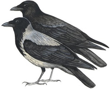 3.)Vrána obecná černá/šedá - si ráda hraje, schovává si věci a není až tak moc častá.